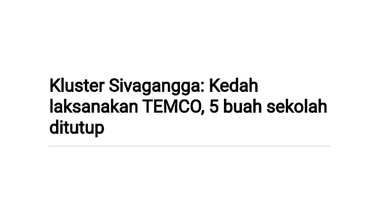 Sementara itu, Majlis Keselamatan Negara (MKN) Kedah telah telah memutuskan untuk mengarahkan lima buah sekolah di dua daerah di negeri itu ditutup selama 28 hari mulai hari ini.