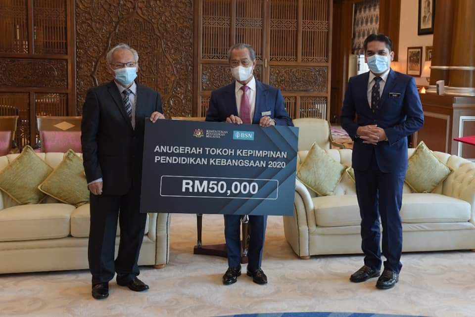 Anugerah telah disampaikan oleh Perdana Menteri, YAB Tan Sri Dato Haji Muhyiddin Bin Haji Mohd Yassin, Perdana Menteri Malaysia di Putrajaya yang turut disaksikan oleh Dr. Radzi Jidin, Menteri Kanan Pendidikan serta Ketua Eksekutif BSN, YBhg. Datuk Yunos Abdul Ghani.