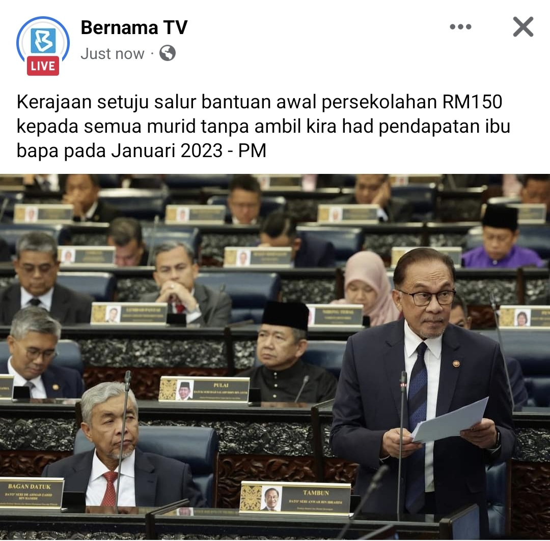 Bantuan Awal Persekolahan RM150 Tanpa Ambil Kira Had Pendapatan
