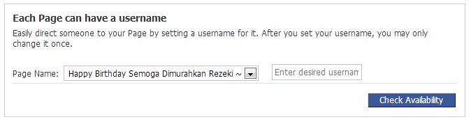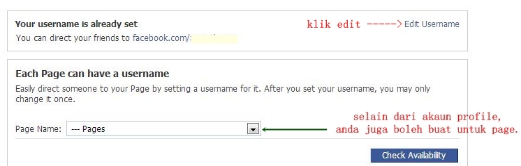 (PASTIKAN ANDA PILIH USERNAME YANG BETUL-BETUL ANDA MAHUKAN, KERANA UNTUK PAGE HANYA SEKALI SAHAJA BOLEH EDIT.)