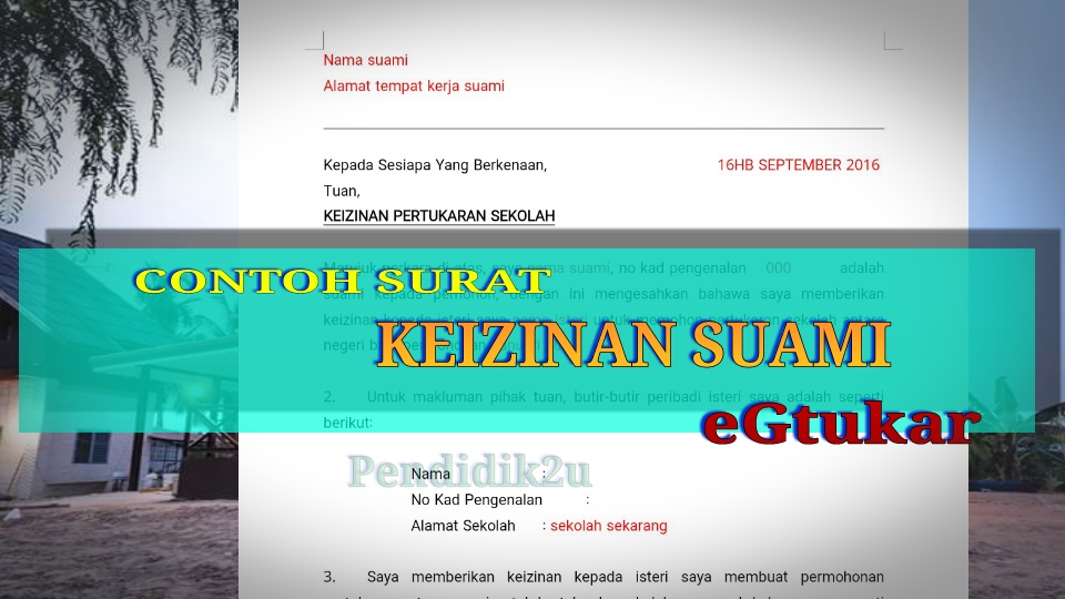 Bagi mereka yang membuat permohonan pertukaran (eGtukar) dan memilih alasan mengikut suami, boleh lampirkan Surat Izin Suami seperti di bawah :