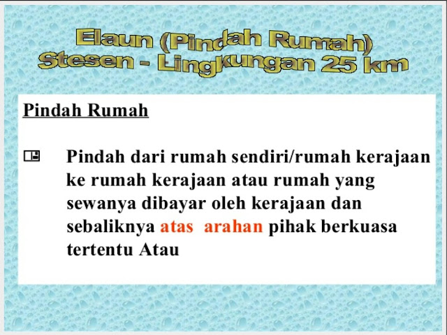 Antara kelebihan yang ada bagi penjawat awam adalah elaun-elaunnya. Salah 1 elaun itu adalah elaun pindah rumah.