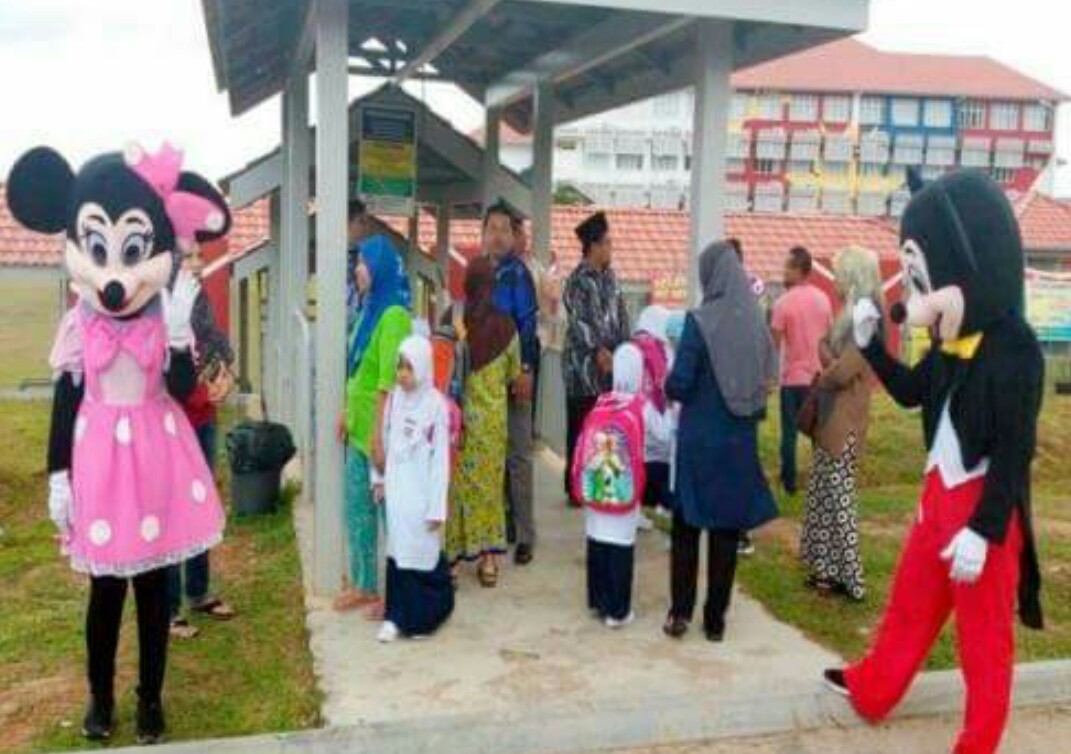 “Tahun lepas kita sambut murid dengan kostum Upin dan Ipin serta Kungfu Panda. Tahun ini kita tampilkan karakter Mickey dan Minnie Mouse dan sambutan yang kita terima daripada ibu bapa sangat menggalakkan,” katanya.