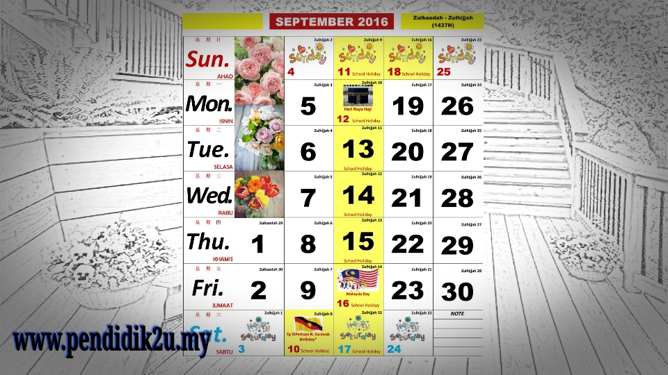 Negeri Johor dan Kedah dapat cuti pada 18 September 2016, kerana hari Malaysia 16 September 2016 jatuh pada hari Jumaat.