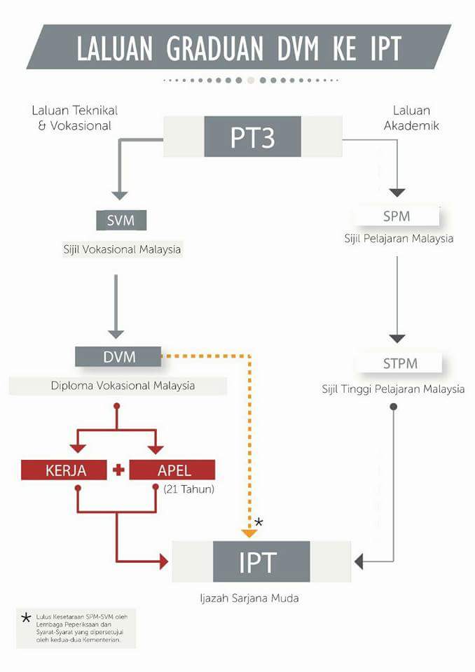 Sebelum ini ada terbaca viral berkenaan Graduan Kolej Vokasional tidak diiktiraf oleh Universiti dan tidak dapat melanjutkan ke peringkat Sarjana Muda. Sebenarnya ramai yang tidak faham bagaimana laluan pendidikan bagi pelajar yang memilih laluan vokasional.