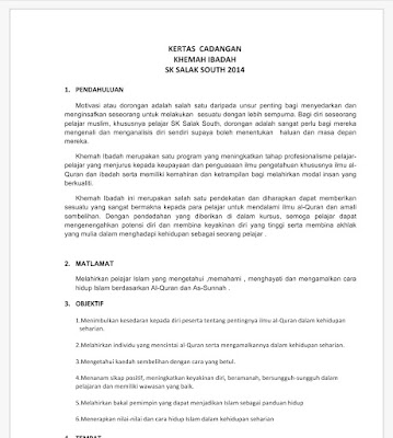 Bagi yang ingin dapatkan contoh kertas kerja Program Motivasi Khemah Ibadah boleh dapatkan di sini. Semoga dapat dijadikan sebagai rujukan para guru sekalian.