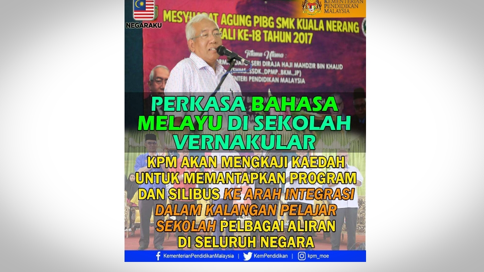 Penjelasan KPM berikutan memperkasakan Bahasa Melayu sebagai medium utama perpaduan.