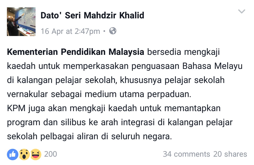 Kementerian Pendidikan Malaysia bersedia mengkaji kaedah untuk memperkasakan penguasaan Bahasa Melayu di kalangan pelajar sekolah, khususnya pelajar sekolah vernakular sebagai medium utama perpaduan.