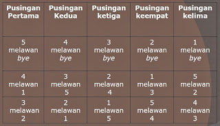 Seterusnya pasukan 4 mendapat bye dan seterusnya.