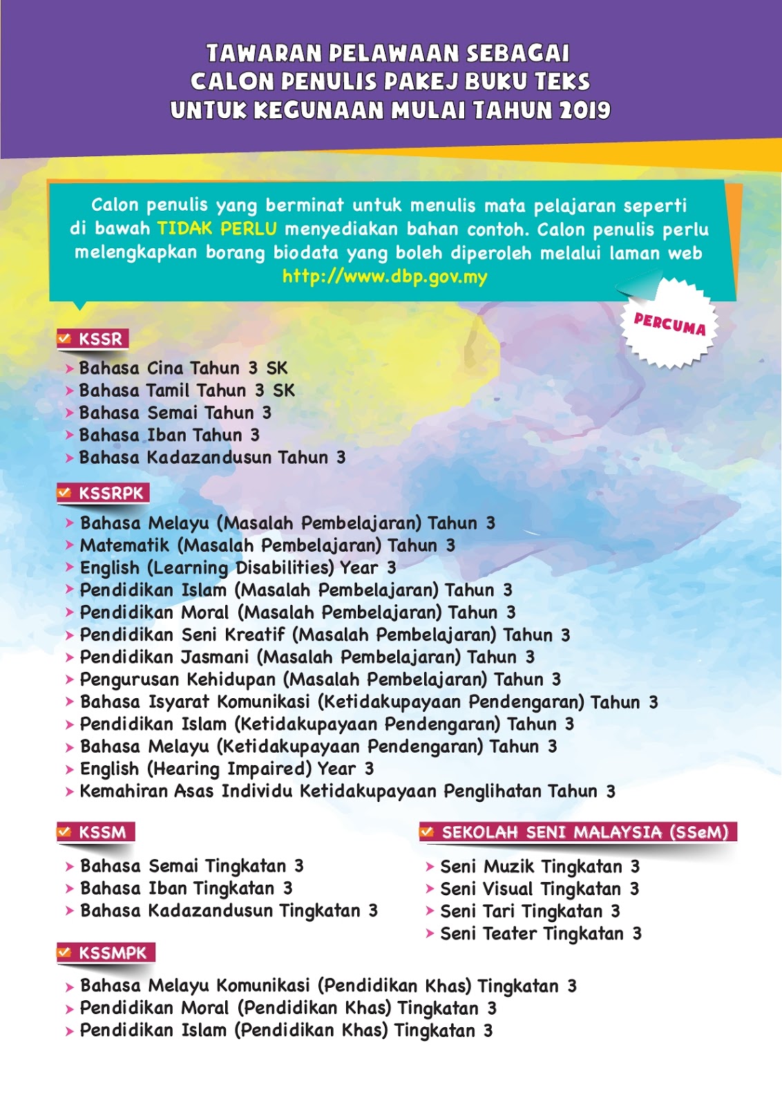 Iklan Tawaran Pelawaan Sebagai Calon Penulis Buku Teks 2019