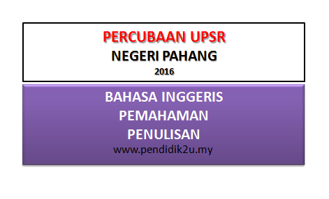 UPSR 2016 sudah semakin hampir, Jadual UPSR juga sudah dikeluarkan oleh KPM. Di sini dikongsikan Soalan Percubaan UPSR 2016 dari Negeri Pahang. Semoga ia dapat membantu guru-guru untuk membuat pecutan terakhir bagi persediaan UPSR.