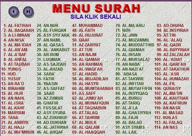 Di dalam software ini terdapat semua surah di dalam Al-Quran beserta bacaannya. Guru hanya perlu menekan pada Ayat, dan secara automatik akan membacanya.