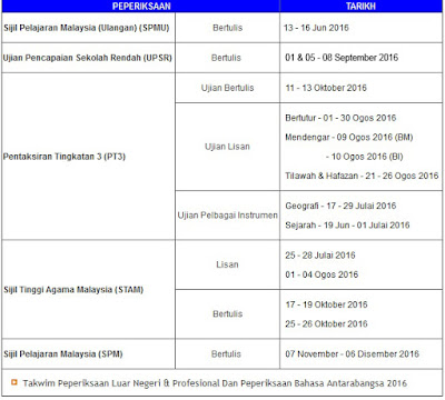 Jadual Peperiksaan Pentaksiran Tingkatan 3 (PT3) 2016