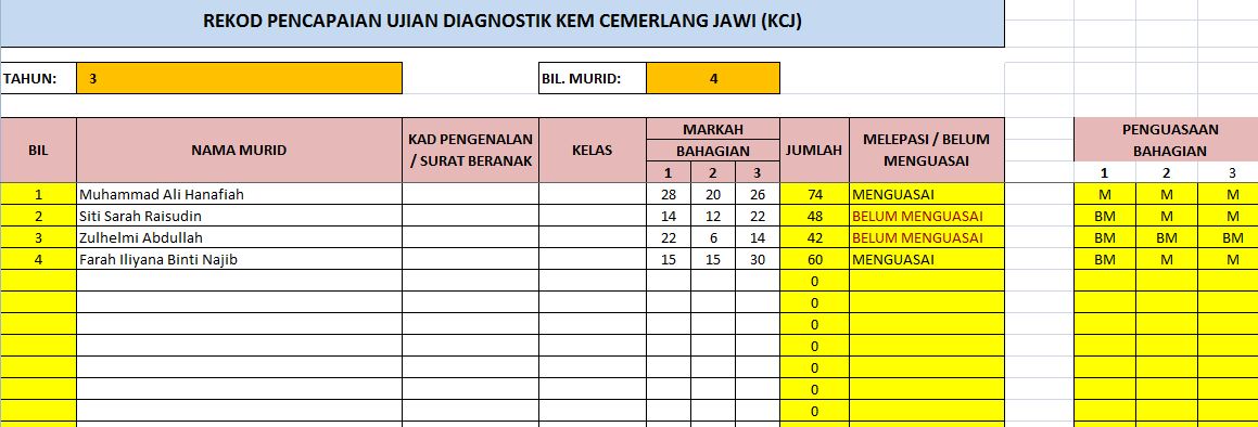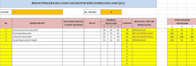 Guru-guru boleh menyimpan data murid yang telah menjalani Ujian Diagnostik ke dalam Tapak Analisis Ujian Diagnostik KCJ yang boleh dimuat turun di pautan: