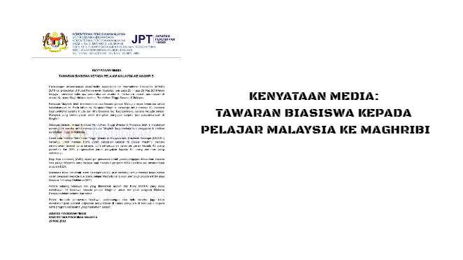 KENYATAAN MEDIA: TAWARAN BIASISWA KEPADA PELAJAR MALAYSIA KE MAGHRIBI