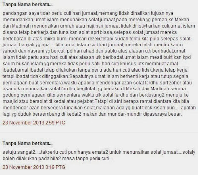 Selain itu juga ada juga dikalangan orang Islam sendiri tidak bersetuju dengan cuti Jumaat ini.