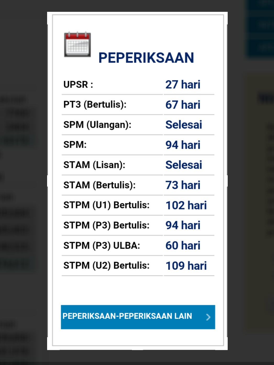 Jumlah Hari Sehingga Tarikh Peperiksaan