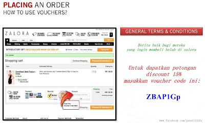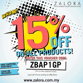 Bagi mereka yang ingin mendapatkan diskaun 15% membeli secara online di zalora anda boleh masukkan voucher code ini : ZBAP1Gp